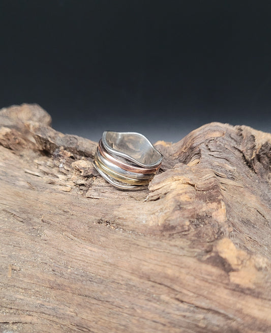 RS-1039 "Trikolore-Welle" Silberring mit drehbaren Innenringe