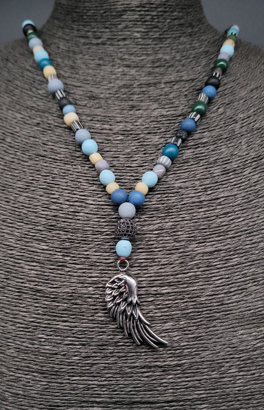 U-HESK-1003 African beads Kette mit Engelsflügel-Anhänger UNIKAT