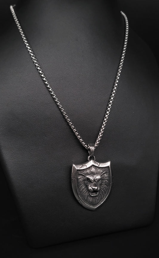 HKE-1011 Edelstahlkette mit Anhänger "Schild mit Löwenkopf"