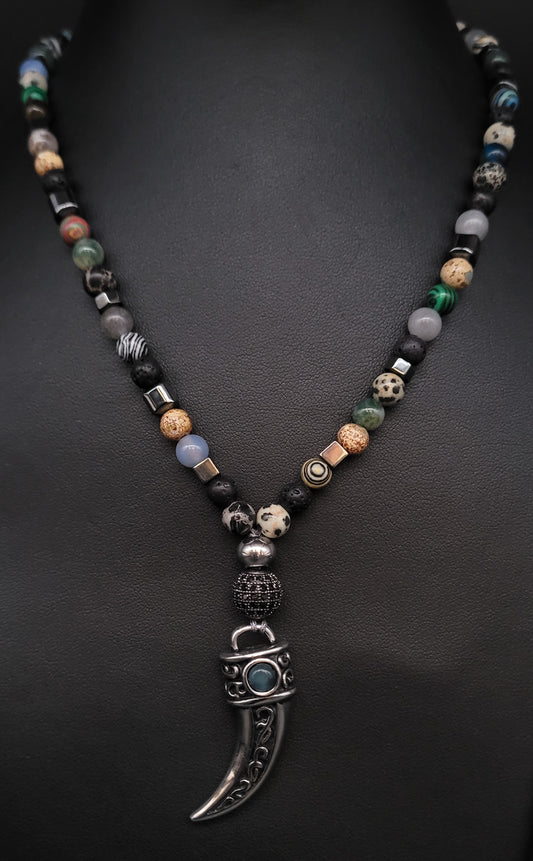 AusverkauftU-HESK-1006 Halbedelsteinkette mit Zahn UNIKAT