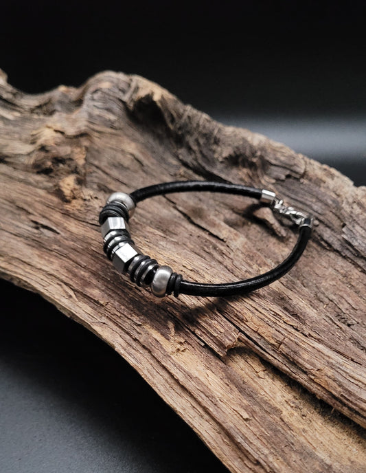 AusverkauftABL/E-2004 Lederarmband mit Edelstahl-Bead's