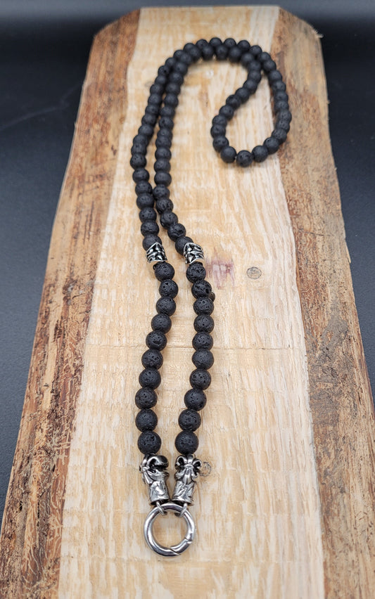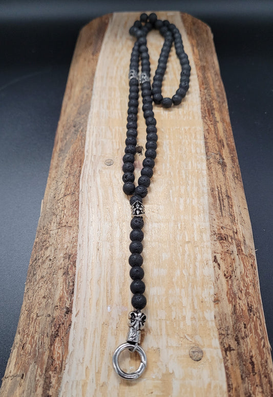 HKLE-3010 Lavastein-Kette ca. 80cm Gothic +Lilie