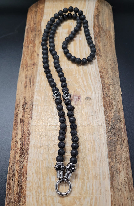 AusverkauftHKLE-3009 Lavastein-Kette ca. 80cm Skull