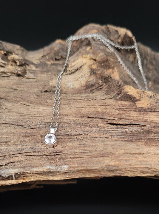 HKS-1007 Silberkette mit rundem Zirkonia-Anhänger in Rundfassung