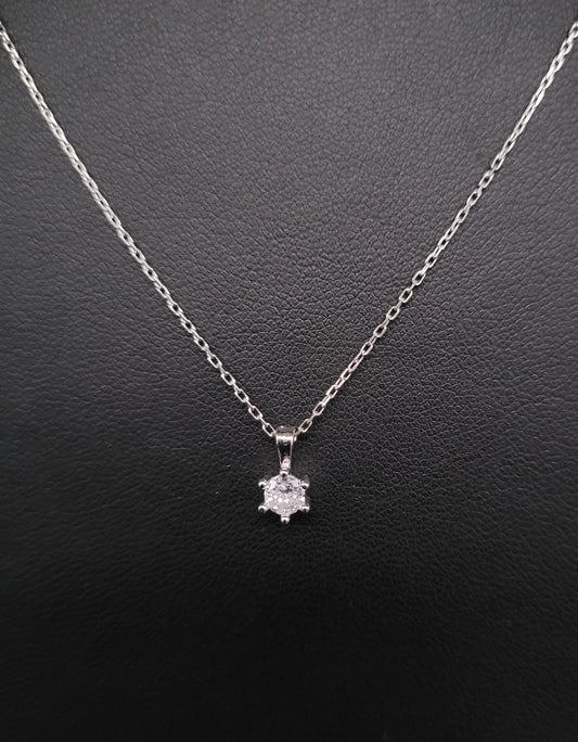HKS-1006 Silberkette mit Zirkonia-Anhänger, 6er Krallenfassung