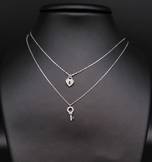 HKS-1005 2 in 1 Silberkette mit Herz und Schlüssel, Zirkonia