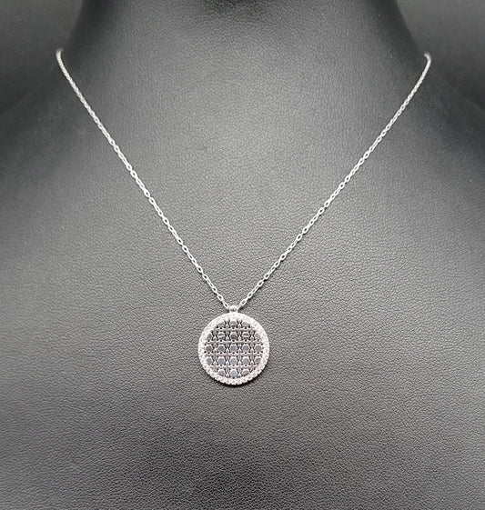 HKS-1016S Silberkette mit rundem Anhänger und Zirkonia besetzt