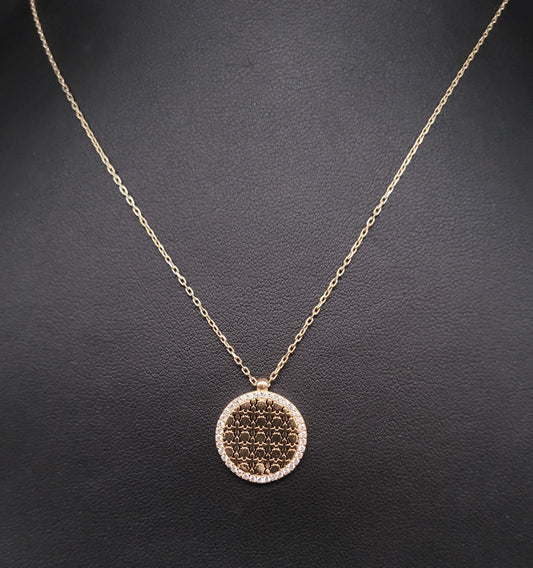 HKS-1016G Silberkette vergoldet mit rundem Anhänger und Zirkonia