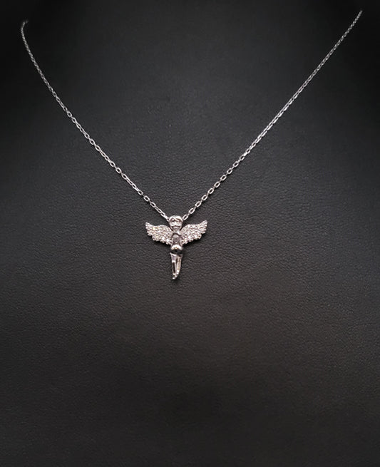HKS-1012 Silberkette mit Schutzengel, Zirkonia besetzt