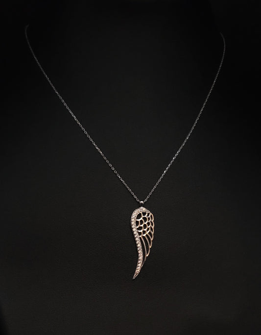 HKS-1001 Silberkette mit Zirkonia besetztem Engelsflügel