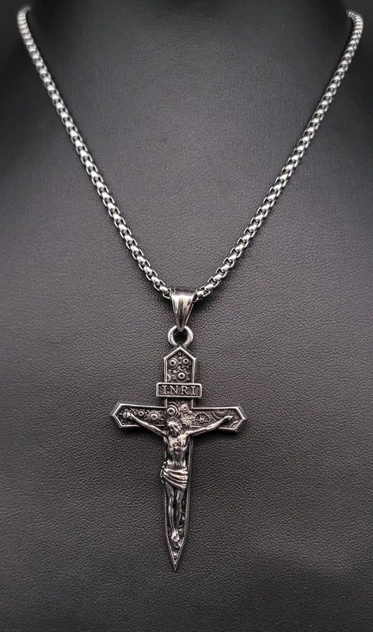 HKE-1006 Edelstahlkette mit Kreuz-Anhänger "Jesus"