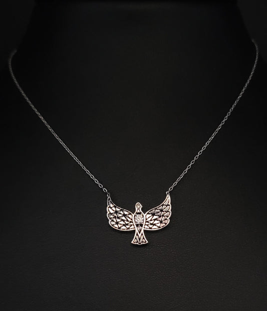 HKS-1015 Silberkette mit schwebendem Vogel und Zirkonia